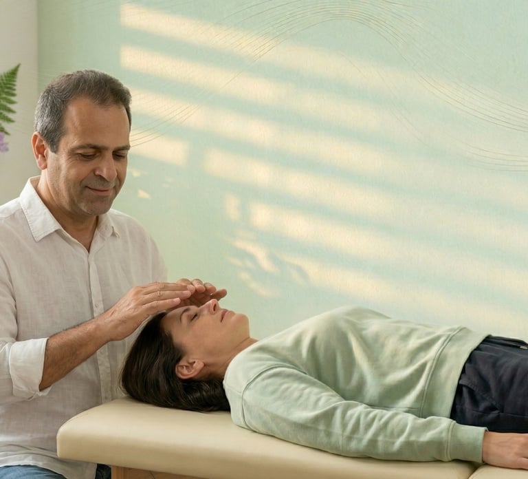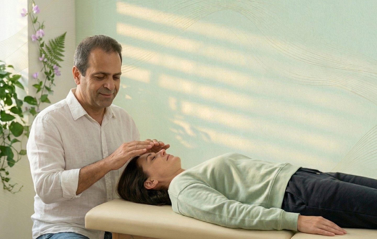 הכניסה לקליניקה היא הזמנה להשאיר את רעשי היומיום בחוץ ולנחות לתוך מרחב שקט, עוטף ובטוח. המפגש הראשון שלנו, שאורך בין שעתיים לשעתיים וחצי, מתחיל תמיד בשיחה נינוחה בגובה העיניים - זהו זמן המוקדש להקשבה עמוקה, שבו נמפה יחד את הקשר שבין התחושות הפיזיות שלך לבין הסיפור הרגשי שמאחוריהן. לאחר מכן, נעבור לחלק החווייתי של הטיפול שמתבצע על מיטת הטיפולים (בלבוש מלא). בעבודה עדינה ומדויקת, המשלבת מגע בנקודות מפתח בגוף ושטיפה אנרגטית בשיטת ד"ר נאדר בוטו, נשחרר חסימות ונאפשר לאנרגיית החיים לזרום מחדש.